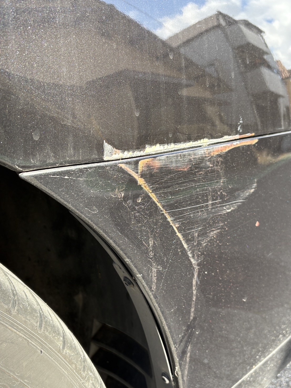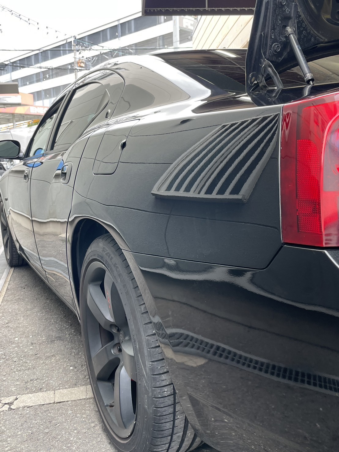 ダッジ チャージャー ブリリアントブラックパール リアフェンダー 傷修理【カラーナンバー PXR】
